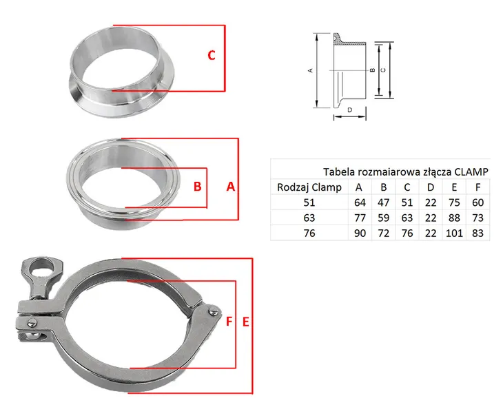 WZIERNIK KWASOODPORNY NIERDZEWNY 76 MM na złączu Clamp.